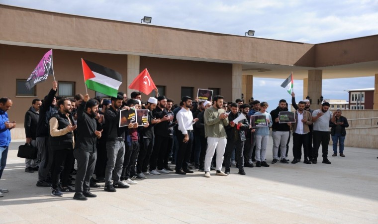 Cuma namazı çıkışında, EBYÜ Camisi önünde gerçekleştirilen açıklamada İsrail’in sivil halkı hedef alan saldırıları durdurması çağrısında bulunan öğrenciler, Filistin halkına yanınızdayız mesajını verirken uluslararası kamuoyunu da desteğe davet etti.