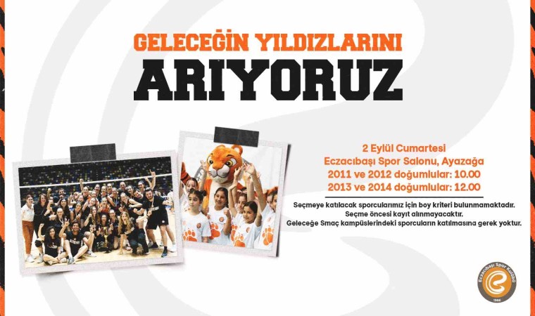Türk voleybolunun lokomotiflerinden olan Eczacıbaşı Spor Kulübü, geleceğin yıldızlarını arıyor. Binlerce sporcuyu Türk voleyboluna kazandıran Eczacıbaşı Spor Kulübü’nün voleybolcu seçmeleri 2 Eylül Cumartesi günü Eczacıbaşı Spor Salonu’nda gerçekleşecek. Seçmeye katılacak sporcular için herhangi bir boy kriteri bulunmamakla beraber 2011 ve 2012 doğumlular saat 10.00’da, 2013 ve 2014 doğumlular ise saat 12.00’de seçmelere katılacak.