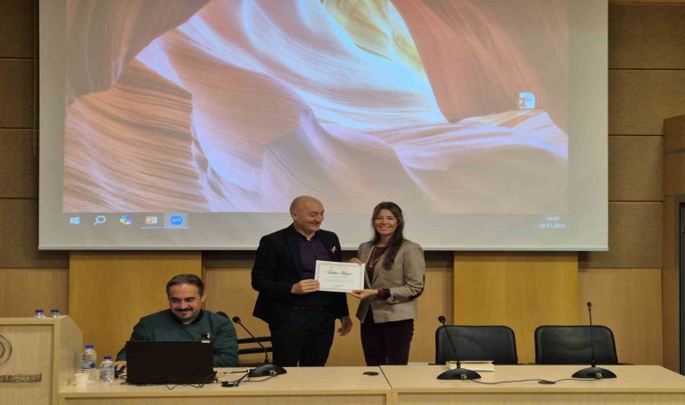Seminer sonunda Prof. Dr. Güzel’e katkılarından dolayı Edebiyat Fakültesi Dekan Yardımcısı ve Sosyoloji Bölüm Başkanı Prof. Dr. Fuat Güllüpınar tarafından teşekkür belgesi takdim edildi.