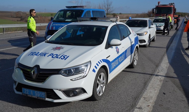 Edirne-İstanbul TEM Otoyolu’nda iki kamyonetin çarpışması sonucu devrilen iki kamyonetten birinin yola savrulan plastik ve hayvan mamaları sebebiyle otoyol kısmen trafiğe kapatıldı.