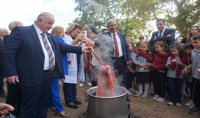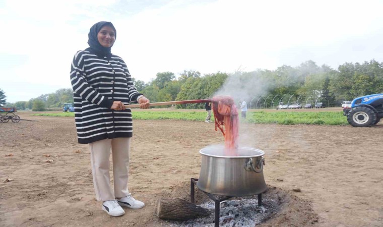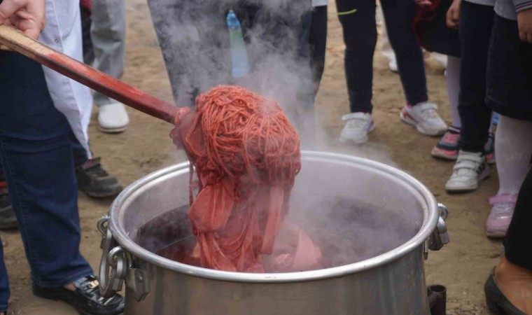 Konuşmaların ardından Edirne kırmızısı renginin elde edildiği bitkinin (rubia tinctorum) hasadı yapıldı. Kazanlarda kaynatılan kök bitkinin içine iplik ve kumaş atıldı. Muhteşem renge bürünen kumaşlar ve iplikler hayranlıkla izlendi.