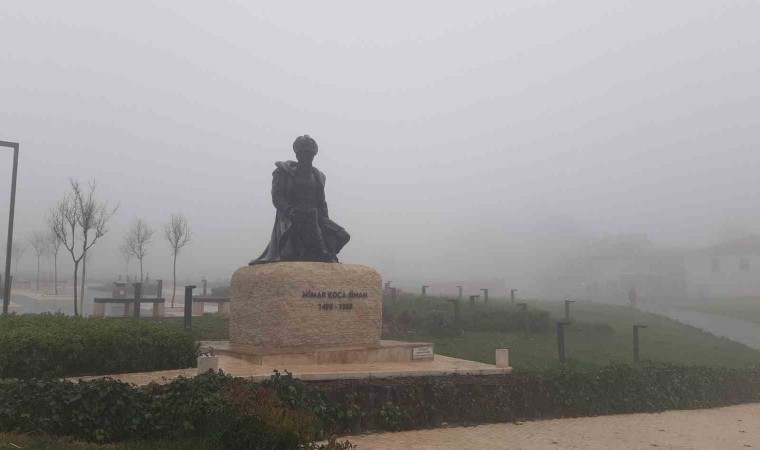 Edirne’de gece geç saatlerde etkili olan yoğun sis nedeniyle görüş mesafesi 20 metreye kadar düşerken, Mimar Sinan’ın ustalık eseri Selimiye Camii ve tarihi köprüler gözden kayboldu.