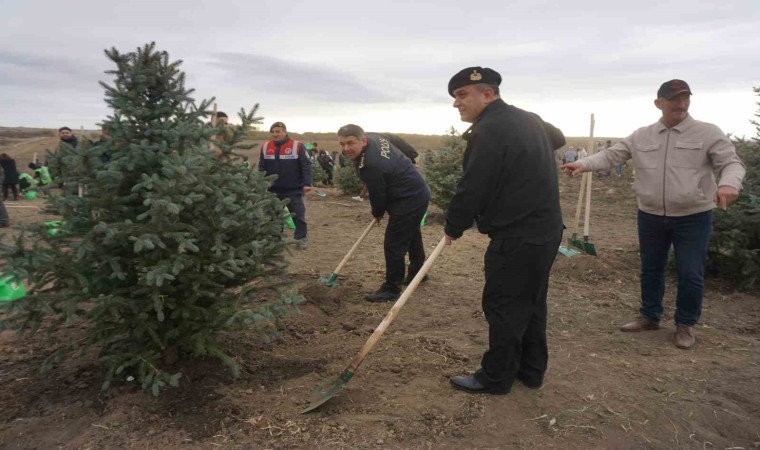 Vali Sezer’in konuşmasının ardından programa katılan protokol üyeleri ve öğrenciler birlikte fidan dikti.
