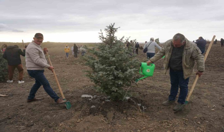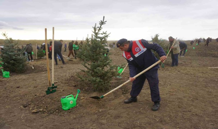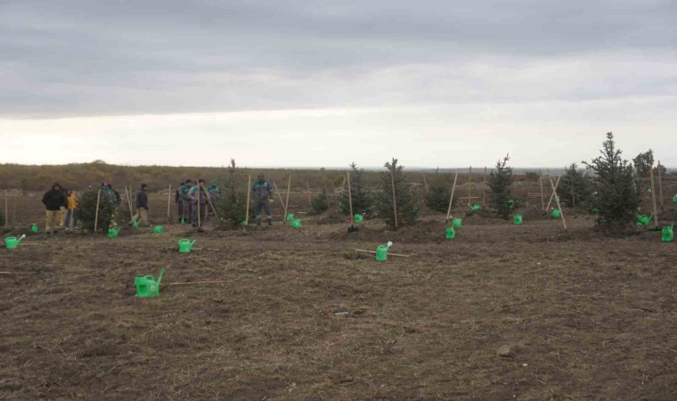 Edirne’de ’Milli Ağaçlandırma Günü’ dolayısıyla Lalapaşa ilçesine bağlı Hacıdanişment köyü yolu üzerinde gerçekleştirilen etkinlikte, 2 bin fidan toprakla buluşturuldu.