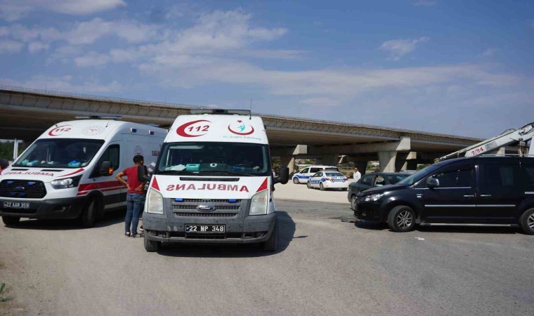 Edirne’den Kapıkule yolu Mehmet Müezzioğlu Köprüsü istikametine seyir halindeki S.A. yönetimindeki 06 L 3771 plakalı otomobil ile İ.A kadın sürücü yönetimindeki 39 EK 322 plakalı otomobilin çarpışması sonucu kaza meydana geldi. Feci kazada araç sürücüleri S.A., İ.A. ve yanında yolcu olarak bulunan Z.A. yaralandı.