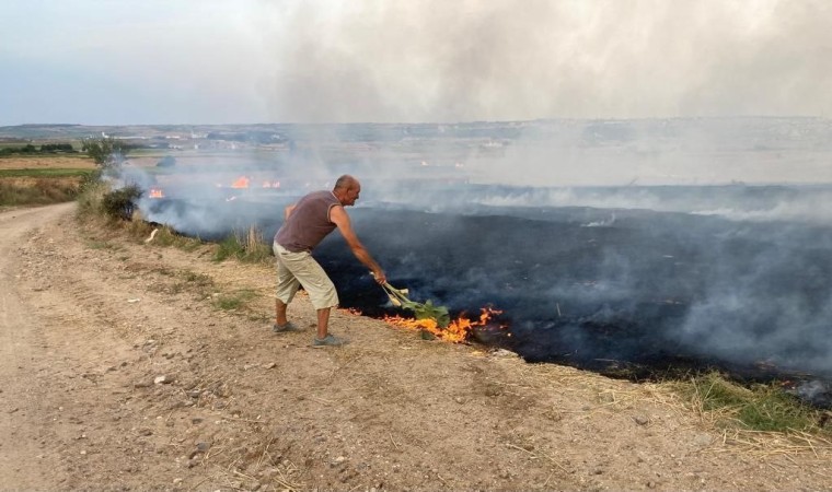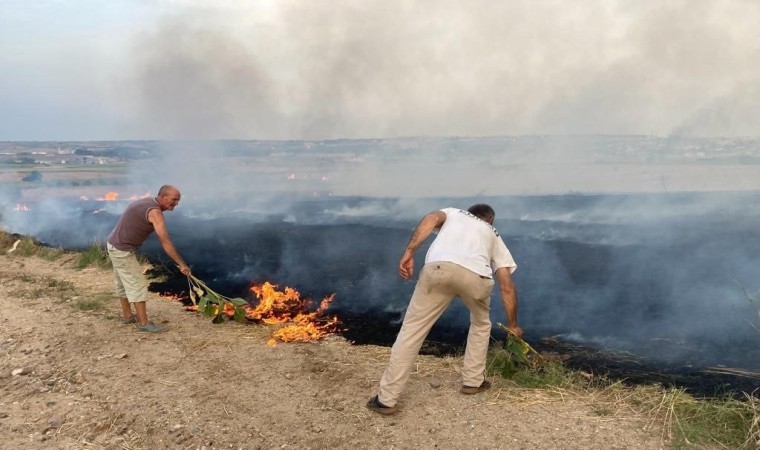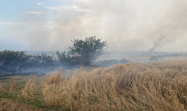 Edirne’de 2 farklı noktada meydana gelen yangınlarda 40 dönüm buğday tarlası ve 500 saman balyası yandı.