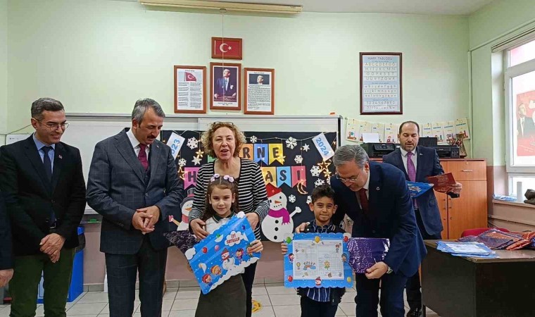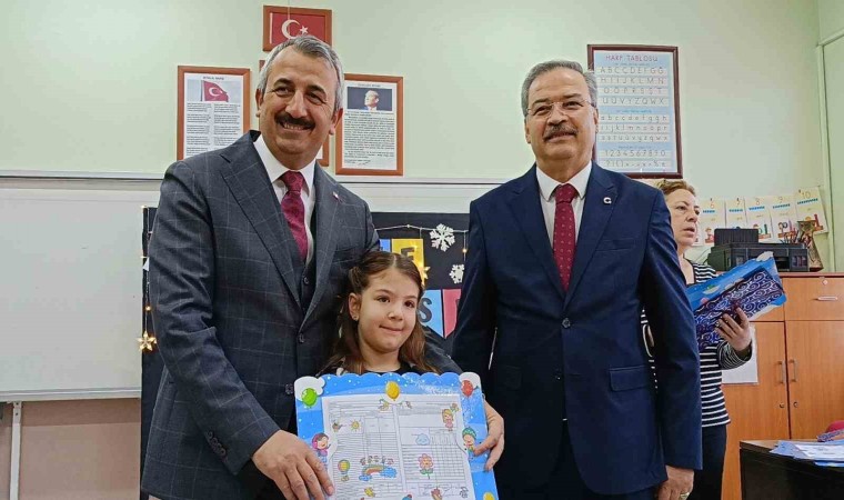 Ardından sınıfları gezen Edirne Valisi Yunus Sezer ve Edirne İl Milli Eğitim Müdürü Önder Arpacı birinci sınıf öğrencilerine karnelerini takdim etti.