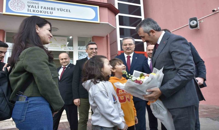 Öğrencilerin mutluluğunu paylaştıklarını söyleyen Edirne Valisi Yunus Sezer, kaymakamlığı döneminde görevde olan rahmetli Vali Fahri Yücel’in isminin yaşatıldığı okulda öğrencilerle birlikte karne sevincini paylaştıklarını belirtti.