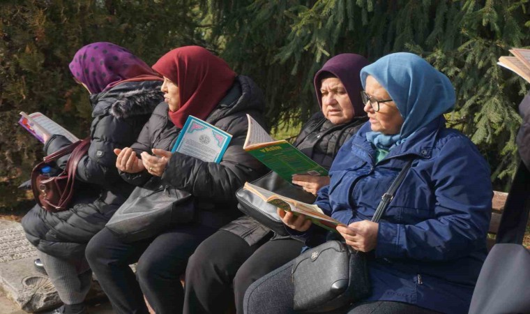 Bugün hatim geleneğine yoğun katılım olduğunu aktaran Erkol, içeride yer kalmayınca cami bahçesine hasır serdiklerini ifade etti.