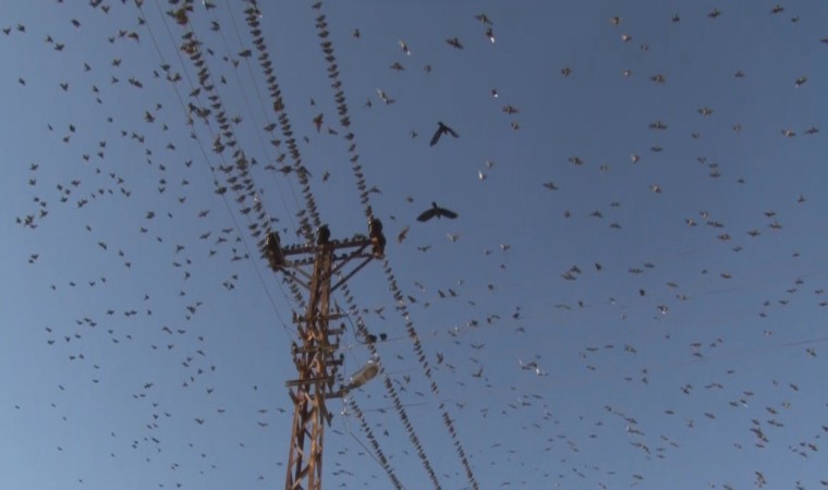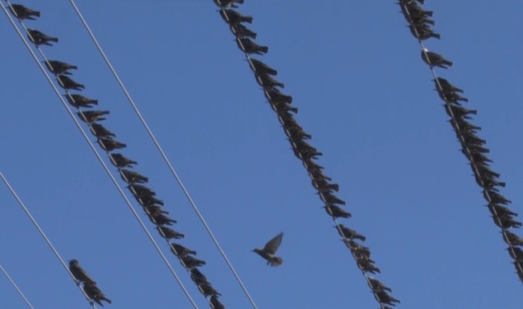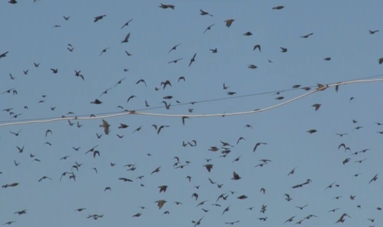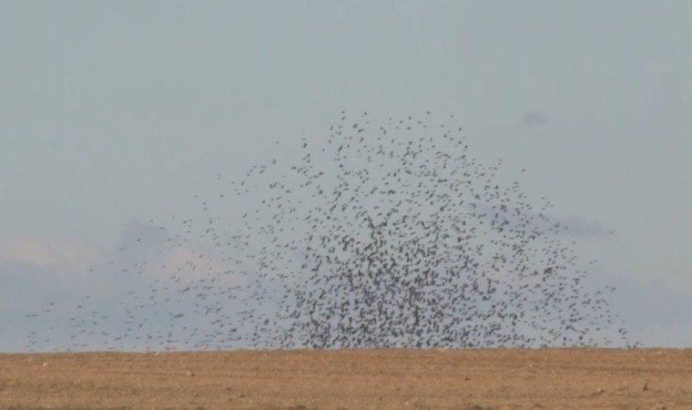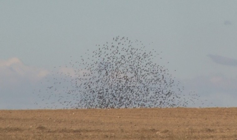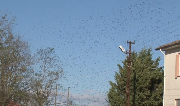 Edirne’de sürü halinde sıcak ülkelere göç eden sığırcık kuşlarının gökyüzündeki görsel şöleninin ardından bir köyde dinlenmek için konaklaması görenleri hayrete düşürdü.