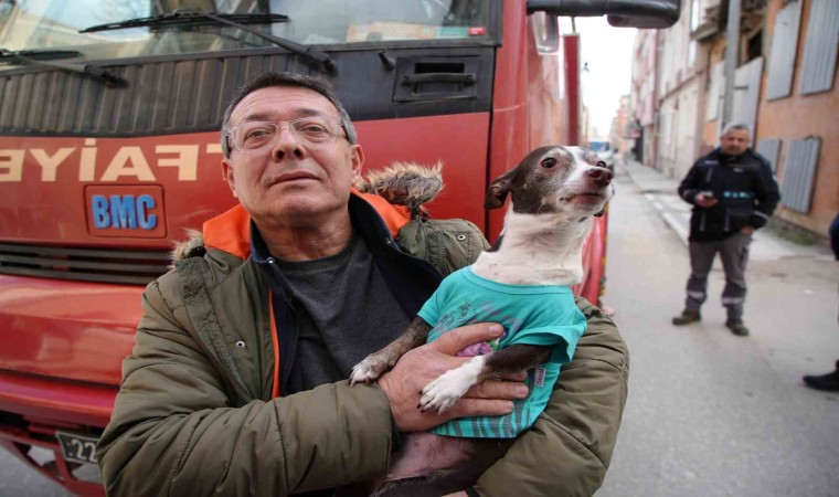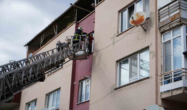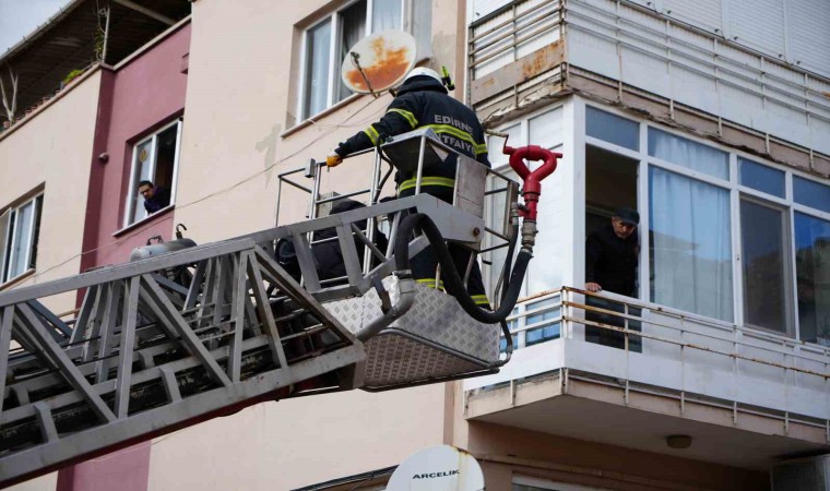 Edirne’de bir apartmanda çıkan yangında mahsur kalan hamile kadın, vatandaşlar ve evcil köpek, itfaiye ekipleri tarafından merdiven yardımıyla pencere ve balkonlardan kurtarıldı.