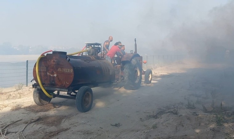Domurcalı köyünde 60 dönüm arazi yandı, tarım makinaları zarar gördü