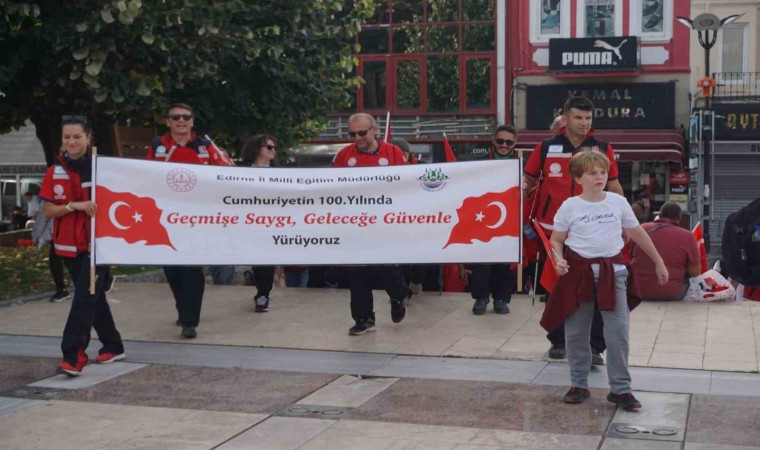 Edirne’de Cumhuriyetin 100’ncü yılı kutlamaları çerçevesinde ’Geçmişe Saygı, Geleceğe Güvenle’ temalı yürüyüş düzenlendi.