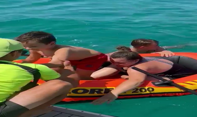 Edirne’de oyuncak şişme botla denize açılan ve sürüklenen anne ile 5 yaşlarındaki oğlunu kurtarmak isteyen 3 kişi de denizde mahsur kaldı. 5 kişinin kurtarılma anları saniye saniye kameraya yansıdı.