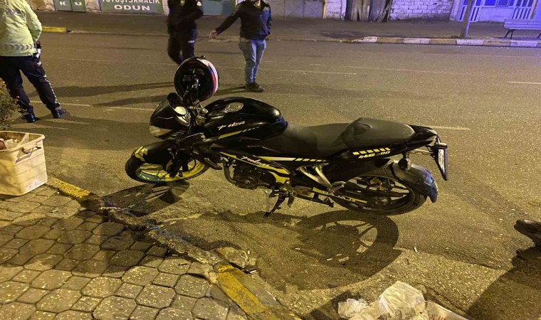 Edirne’de kontrolden çıkan motosiklet devrilirken, sürücü yaralandı.