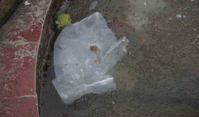 Edirne’de hava sıcaklığının sıfırın altında 1 dereceye kadar düşmesiyle birlikte kentteki süs havuzları buz tuttu.