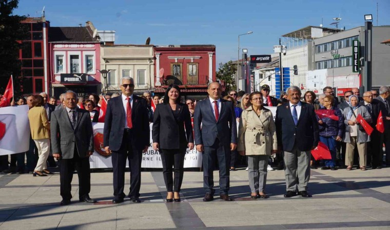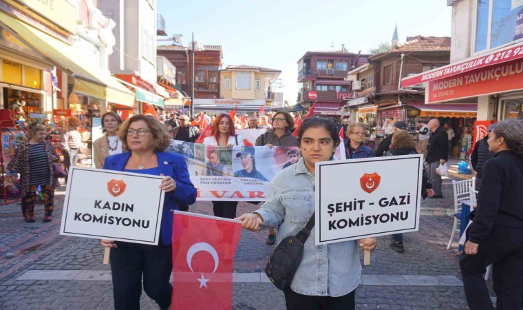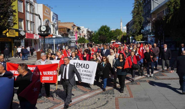Bildiş’in konuşmasının ardından Saraçlar Caddesi’nde bando eşliğinde kortej yürüyüşü düzenlendi. Dev Türk bayrağı ve marşlar eşliğinde yürüyüş yapan emekli astsubaylar ve eşleri, alkışlarla izlendi.