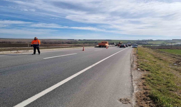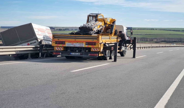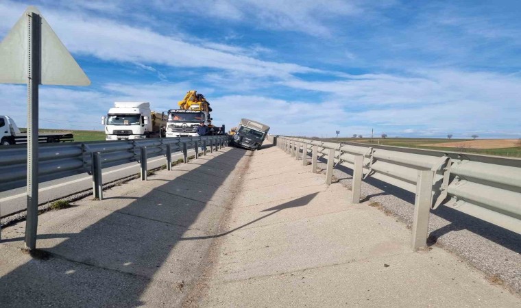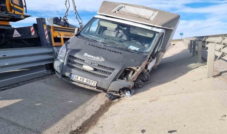 Edinilen bilgiye göre, Edirne’den İstanbul istikametinde seyir halinde olan A.S. idaresindeki 34 YB 9972 plakalı kamyonet, bölünmüş yol arasındaki bariyerlerin arasına girerek ilerlemeye devam etti.