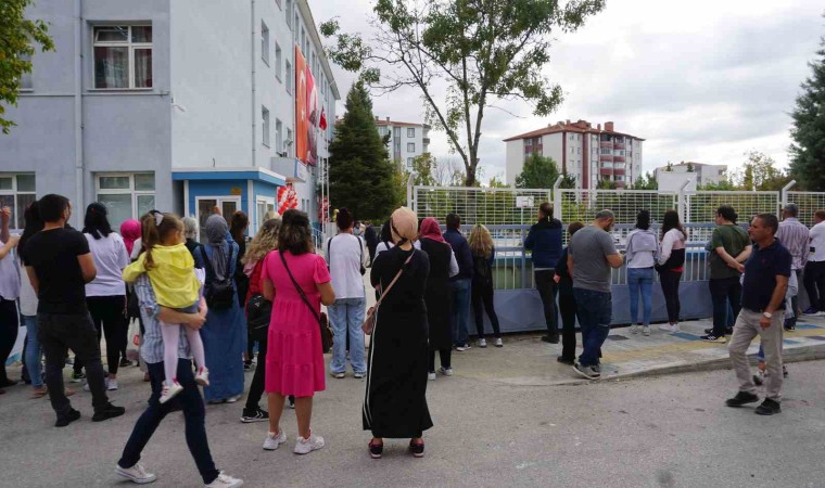 Çocuklarıyla birlikte sabahın erken saatlerinden itibaren hazırlıklarını tamamlayarak okulun yolunu tutan veliler, okul önünde ders zilinin çalmasını bekleyerek düzenlenen törene katıldı.