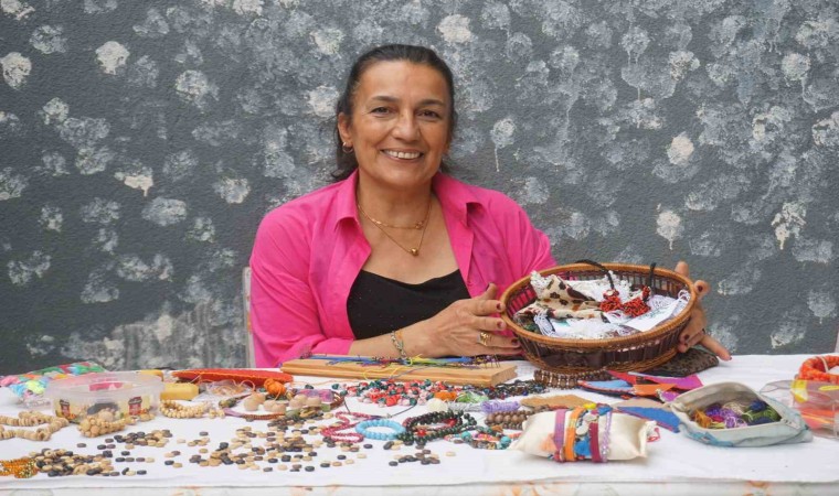Edirne’de yaşayan 61 yaşındaki Meltem Atak, meme kanserine karşı verdiği savaşı kazandıktan sonra moral bulmak ve oyalanmak amacıyla gittiği kurslarda öğrendiği el emeği göz nuru takı işini severek sürdürerek ev ekonomisine de katkı sağlıyor.