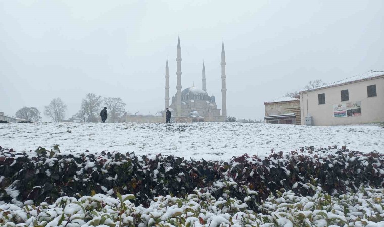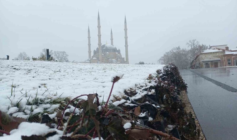 Kısa sürede beyaza bürünen Edirne’de, birçok nokta karla kaplandı. Trafikteki araçların kazaya sebep olmamak için dikkatli ve yavaş seyrettikleri görüldü.