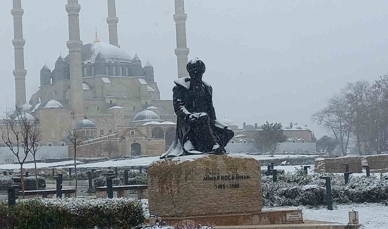 Hava sıcaklığının -1 dereceye düştüğü Edirne’de, 4 gün önce başlayan ve aralıklarla devam eden kar yağışı etkisini artırarak sürüyor. Balkan köylerinde tipi şeklinde görülen kar yağışı, kent genelinde de etkili oluyor. Mimar Sinan’ın ustalık eserim dediği Selimiye Camii ve meydanı karla adeta bütünleşti.