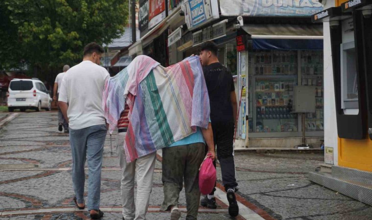 Çarşaflar ile kendilerini yağmurdan korumaya çalıştılar