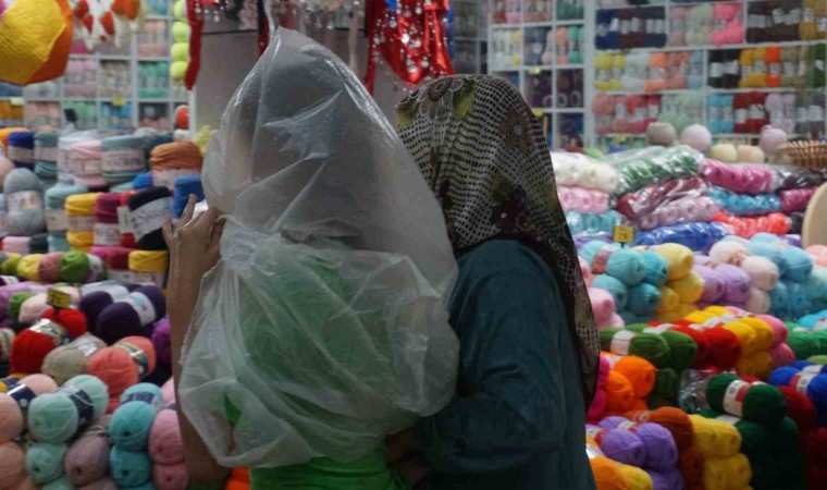 Sağanak yağışa hazırlıksız yakalanan vatandaşlar yağmurdan korunmak için tarihi çarşılara sığınırken, yolda yürüyen başka bir aile ise çarşafı kafalarına geçirerek gitmeyi tercih etti. Nemli ve sıcak havaya rağmen yağan yağmur kısa süreliğine de olsa havayı serinletti.