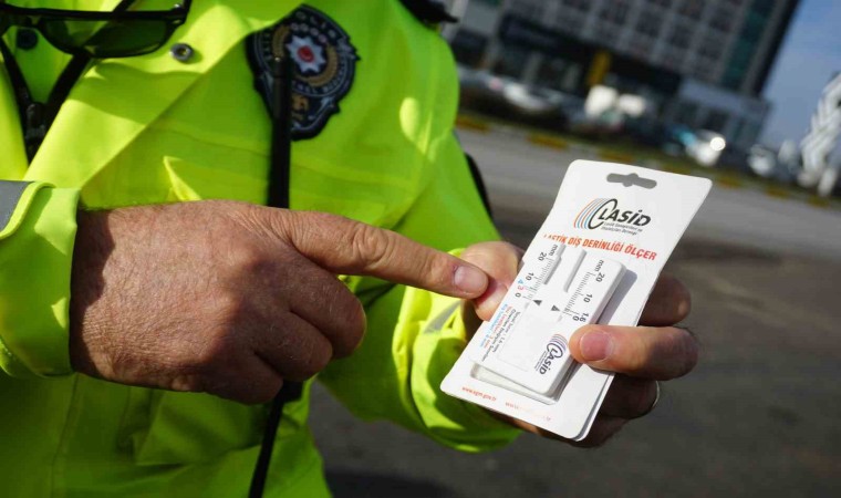 Lastik ölçme kumpasında gösterildiği üzere kanuni sınırın 1,6 milimetre olması gerektiğini aktaran Arslan, 3 milimetre olan yaz lastiği, 4 milimetre olan ise kış lastiği olarak belirlendiğini söyledi.