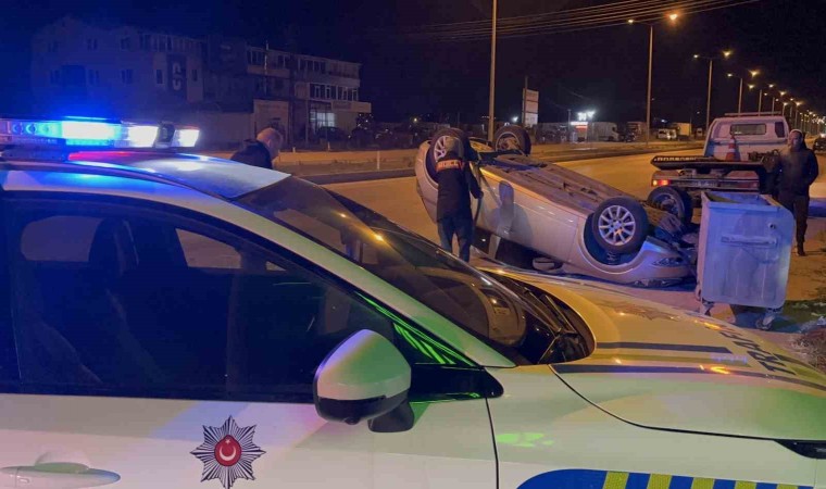 Edirne’de direksiyon kontrolünü kaybederek refüje çarpan otomobil sürücüsünün takla atması sonucu iki kişi yaralandı.