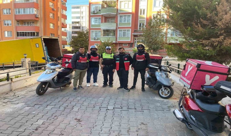 Motokuryelere bilgilendirici broşür de dağıtıldı. Motokuryeler, trafik ekiplerine teşekkür etti.