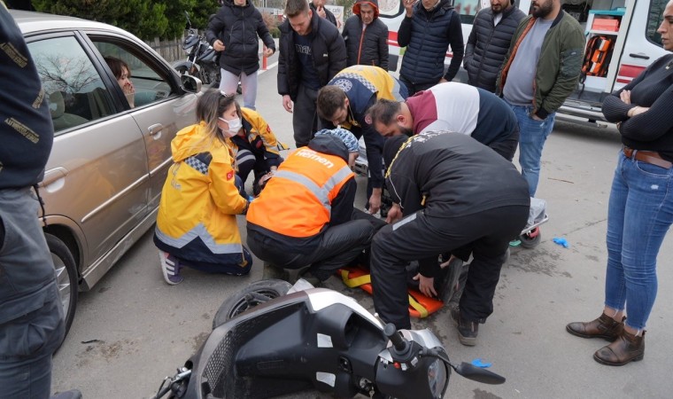 Çarpışmasının etkisiyle motosiklet sürücüsü A.T. yere düşerek yaralandı. Çevrede bulunan vatandaşlar da yaralının başında durarak, sağlık ekiplerinin gelmesini bekledi.