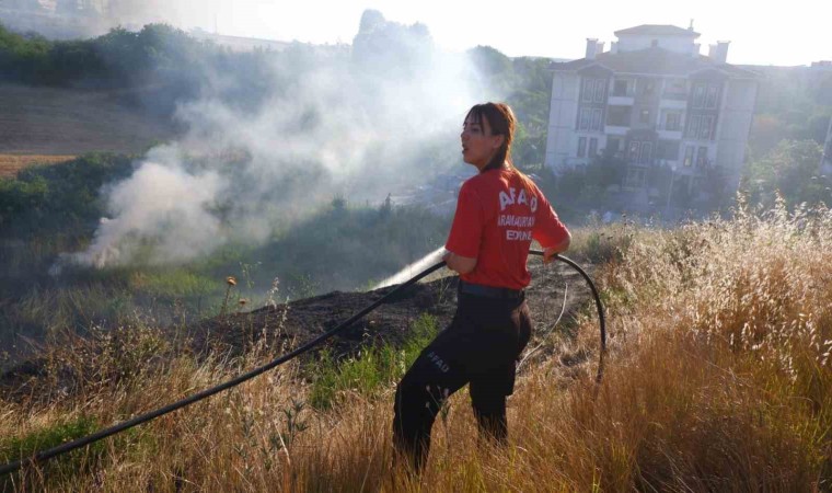 Edirne’de otluk alanda çıkan ve yerleşim alanına kadar yayılan yangın, evlere sıçramadan söndürüldü.