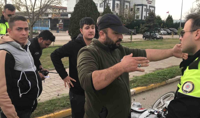 Kaza, İstasyon Mahallesi Atatürk Bulvarı üzerinde meydana geldi. Edinilen bilgiye göre, Bulgaristan uyruklu Yavor Tiko yönetimindeki CO 6157 BC plakalı otobüs, aynı istikamette ilerleyen Efe Assı’nın kullandığı motosiklet ile Burak Nalbant kontrolündeki otomobil çarpıştı. Çarpışmanın etkisiyle yere savrulan motosiklet sürücüsü yaralandı. Çevredekilerin ihbarı üzerine olay yerine polis ve sağlık ekipleri sevk edildi. Sağlık ekiplerinin olay yerindeki ilk müdahalesinin ardından yaralı ambulansla hastaneye kaldırıldı.
