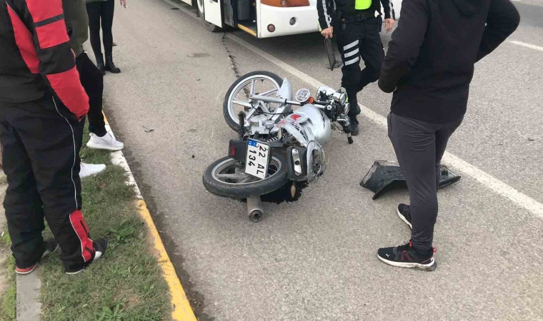 Edirne’de otobüs ile aynı yönde ilerleyen motosiklet ve otomobilin karıştığı kazada 1 kişi yaralandı.
