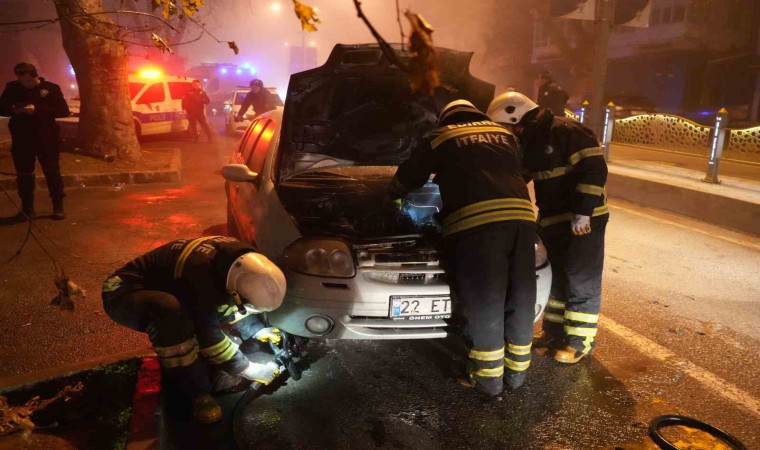 Edirne’de seyir halinde olan bir otomobilin motor kısmında çıkan yangın sonucu alevlere teslim oldu.