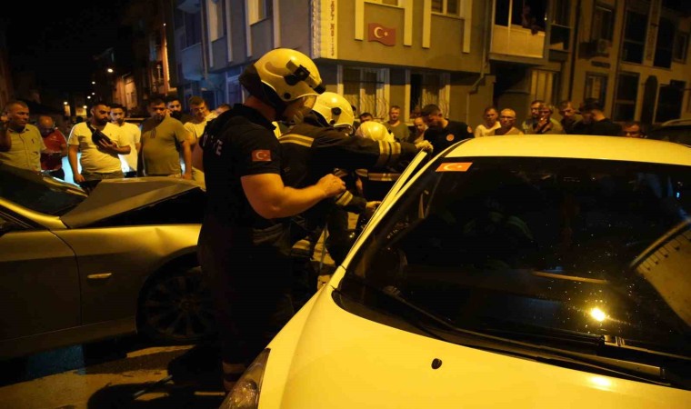 Edirne’de 3 otomobilin karıştığı kazada mahalleli gece yarısı sokağa dökülürken, otomobilde sıkışan 2 kişiyi kurtarmak için ekipler seferber oldu.