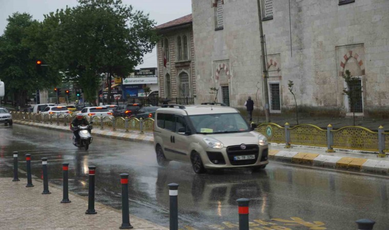 Edirne’de sabah saatlerinde havanın kararmasının ardından hafif şekilde başlayan sağanak yağış belli aralıklarla etkisini artırdı.