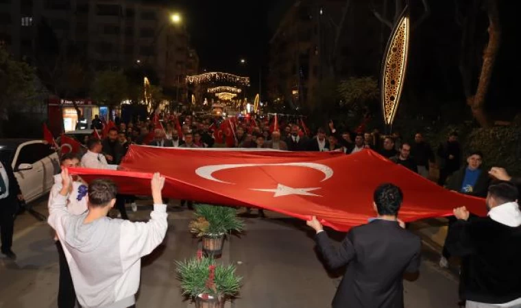 Yürüyüşte bulunanlar daha sonra İki Minareli Çarşı Camii’nde şehitler için okutulan mevlide katıldı. (DHA)