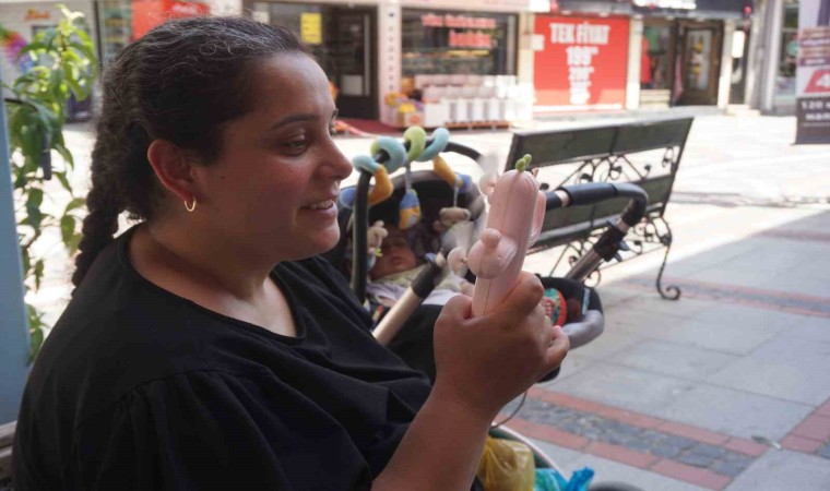 Bebeği ile birlikte pazara çıkan Büşra Ülgey Kayıcı, "Çok sıcak gölgeden gitmeye ve el pervanesi ile serinlemeye çalışıyorum. Çocuğu okula bıraktıktan sonra o boşlukta alışverişe çıktık ama sıcaktan bunalınca dinlenelim dedik" ifadelerine yer verdi.