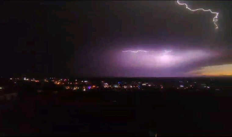 Edirne’de etkili olan gök gürültülü sağanak yağış ile birlikte çakan şimşekler geceyi aydınlattı.