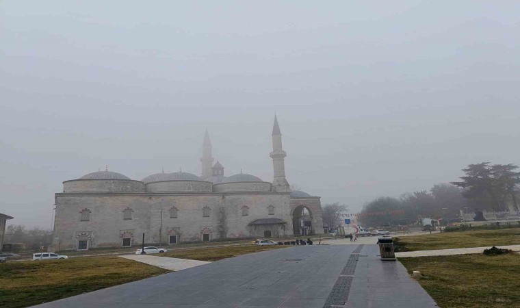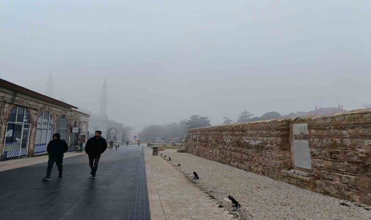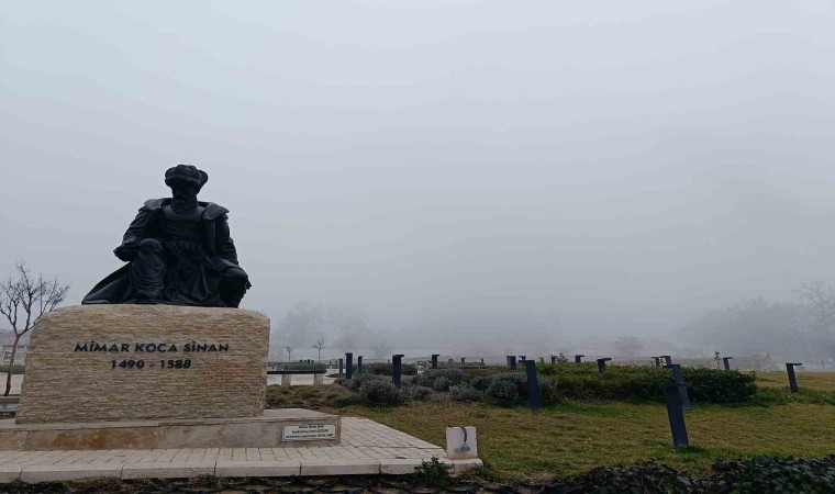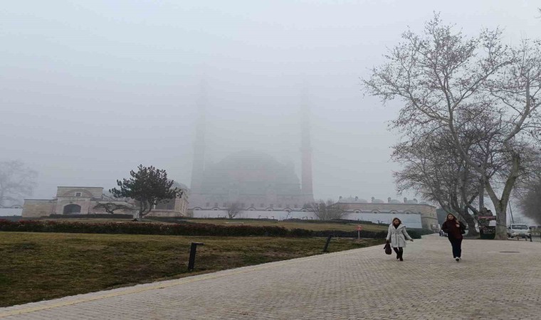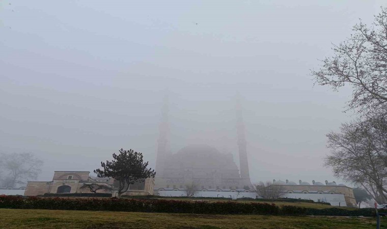 Edirne’de sabahın erken saatlerinden itibaren etkili olan sis hayatı olumsuz etkiledi. Görüş mesafesi 50 metreye kadar düştü, Mimar Sinan’ın ustalık eseri Selimiye Camii gözden kayboldu.