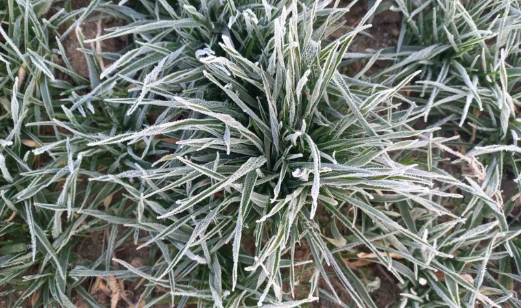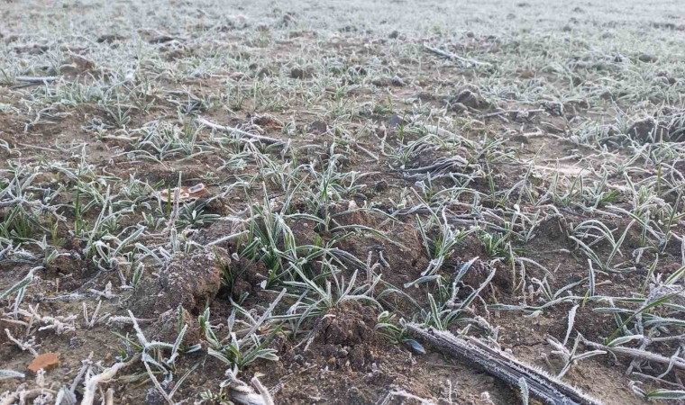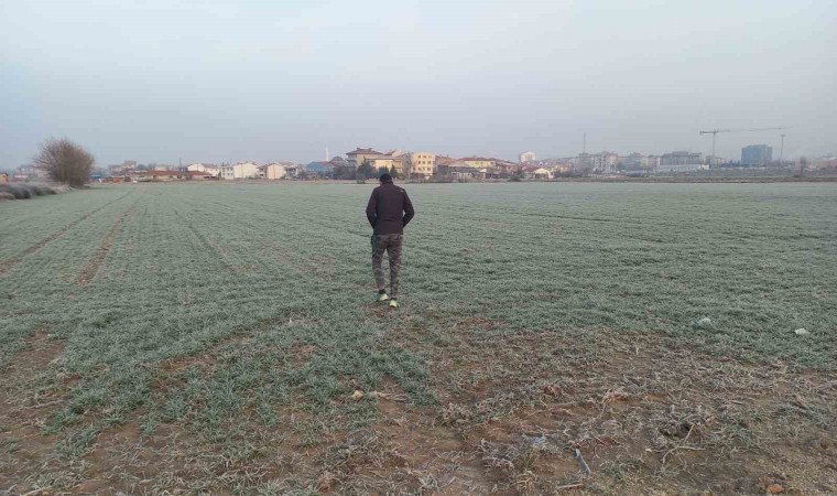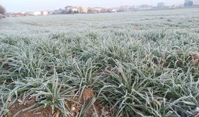 Edirne’de hava sıcaklıklarının sıfırın altına düşmesiyle birlikte tarlalar da buz tuttu.