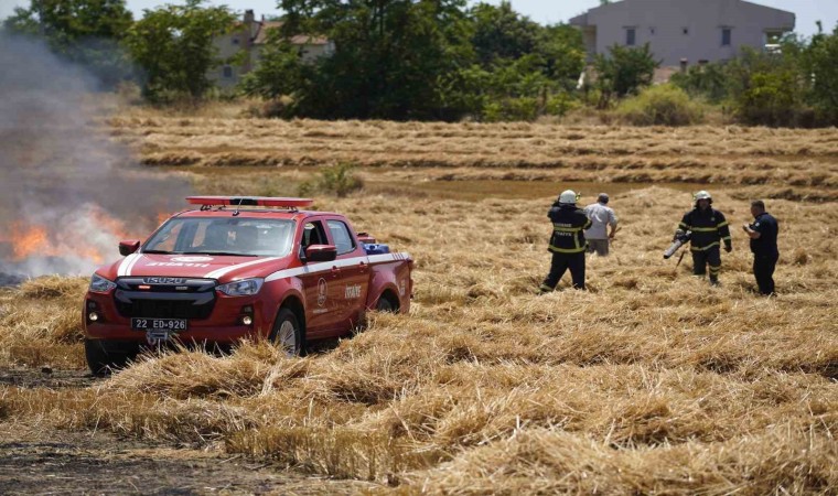 Edirne’nin Karaağaç Mahallesi’nde mahsulü toplanmış bir buğday tarlasında henüz belirlenemeyen sebeple yangın çıktı. Yangını gören vatandaşlar ilk olarak kendi çabalarıyla yangını söndürmeye çalıştı. Haber verilmesi üzerine bölgeye polis, itfaiye, acil sağlık ve orman işletme müdürlüğü ekipleri sevk edildi.