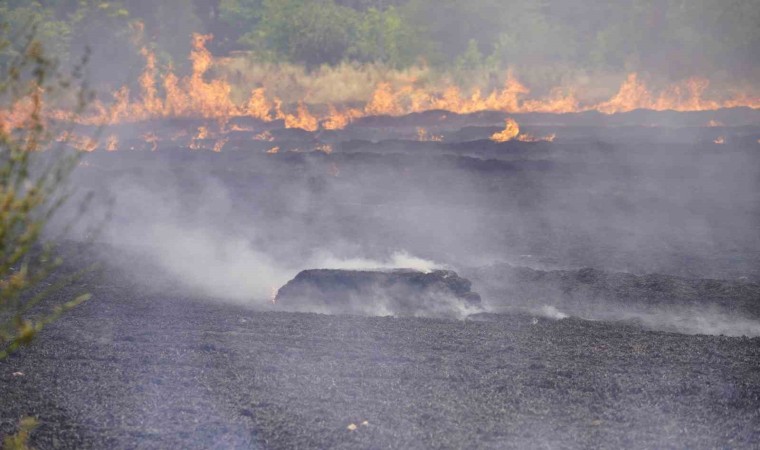 Yangında 40 dönümlük alandaki çok sayıda saman balyasının da zarar gördüğü belirtildi.
