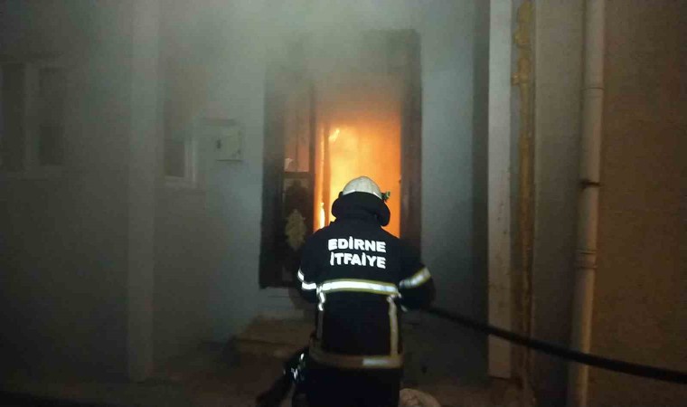 Edirne’de tek katlı ev, çıkan yangında kullanılamaz hale geldi.
