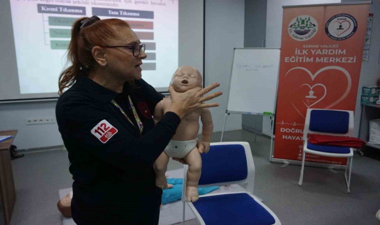 2019 yılının Ekim ayından bu yana ilk yardım eğitimi verdiklerini söyleyen Edirne Valiliği İlk Yardım Eğitim Merkezi Müdürü Ayten Ülgü Sünnetçiler, toplumun bilgi ve becerilerini geliştirmenin yanı sıra uygulanabilecek eğitimlerle de ilk yardımcı olmalarına katkı sağladıklarını belirtti.
