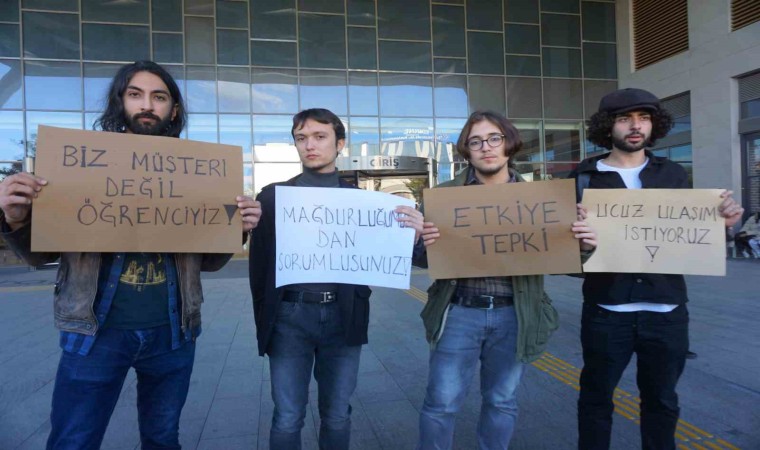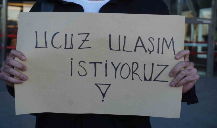 Öğrenciler ’Ucuz ulaşım istiyoruz’, ’Mağdurluğumuzdan siz sorumlusunuz’, ’Biz müşteri değil öğrenciyiz’ şeklinde açtıkları dövizlerle kentteki pahalı ulaşım sorununa dikkat çekti.
