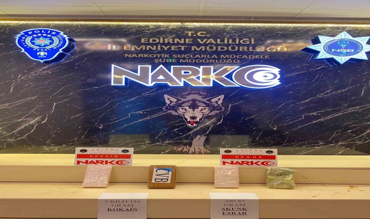 Edirne’de polis ekiplerince düzenlenen uyuşturucu operasyonunda bir tırda 10 milyon Türk Lirası değerinde 3 kilo 150 gram kokain ile 300 gram skunk ele geçirildi.