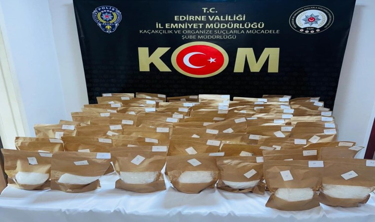 Edirne’de şüphe üzerine durdurulan bir minibüste yapılan arama sonucu, valizlere gizlenmiş halde 72 kilo metamfetamin ele geçirildi.
